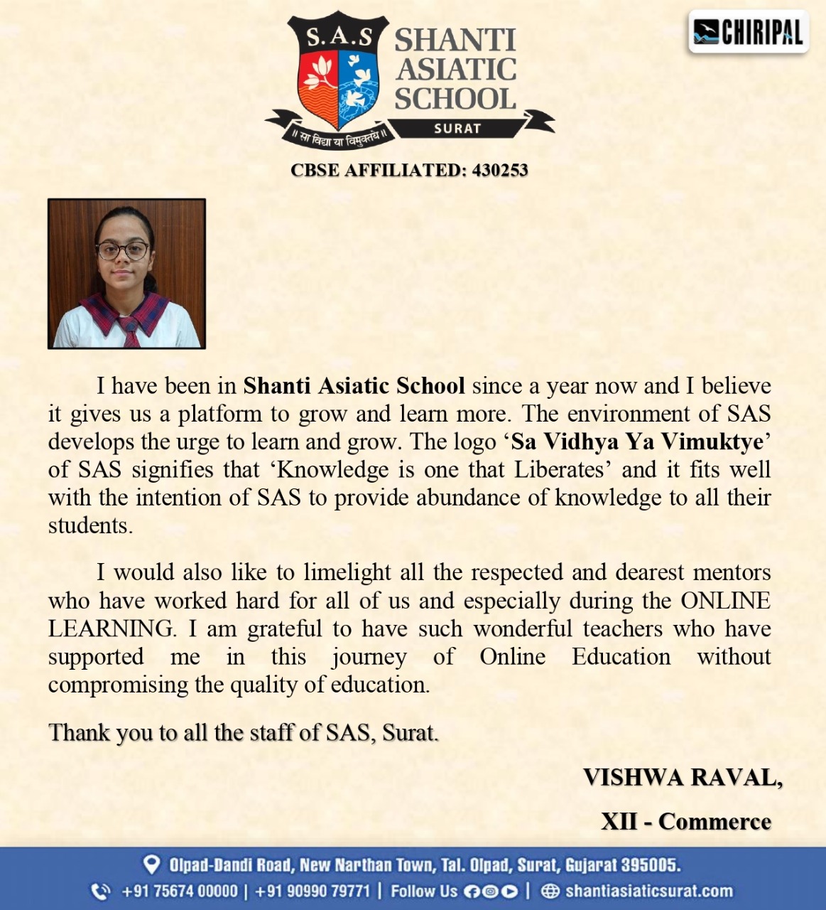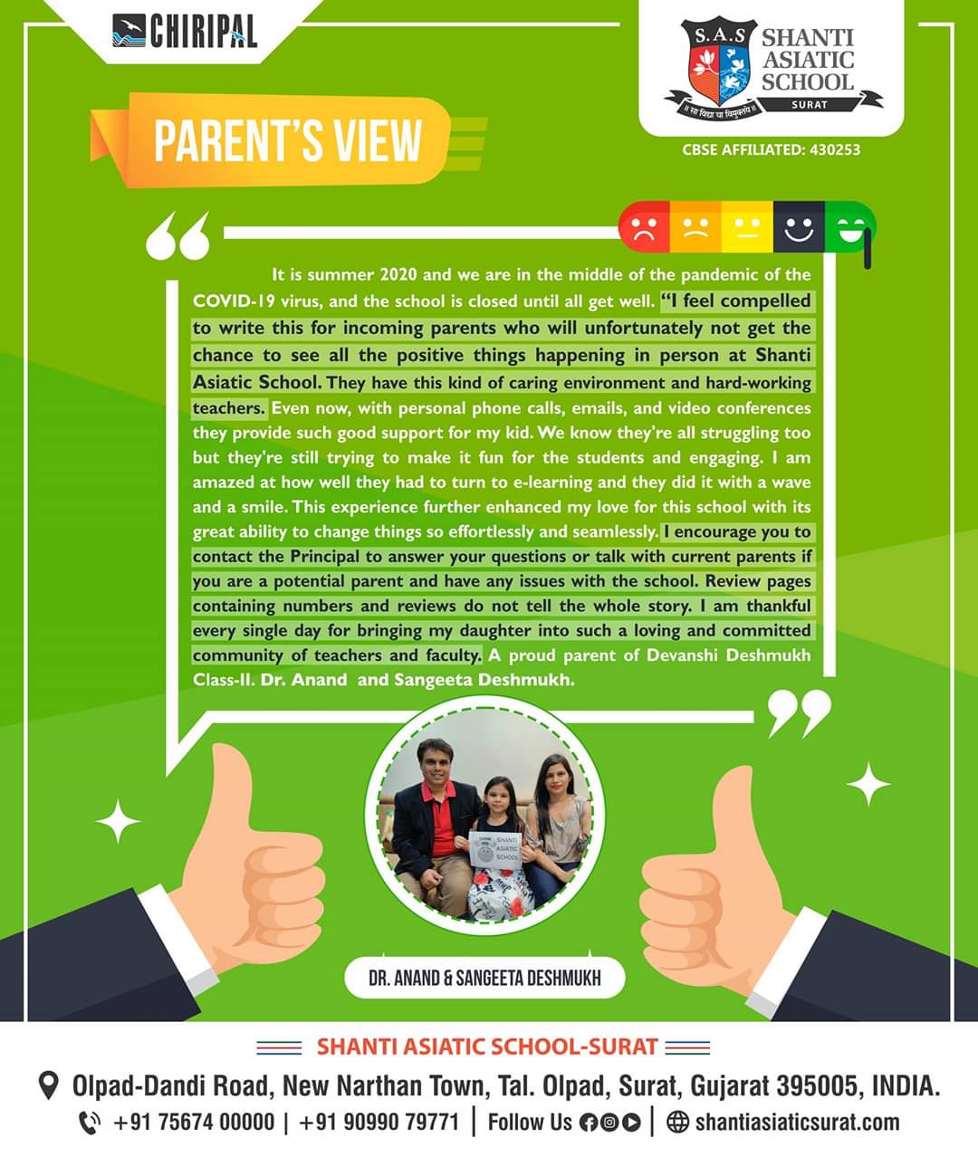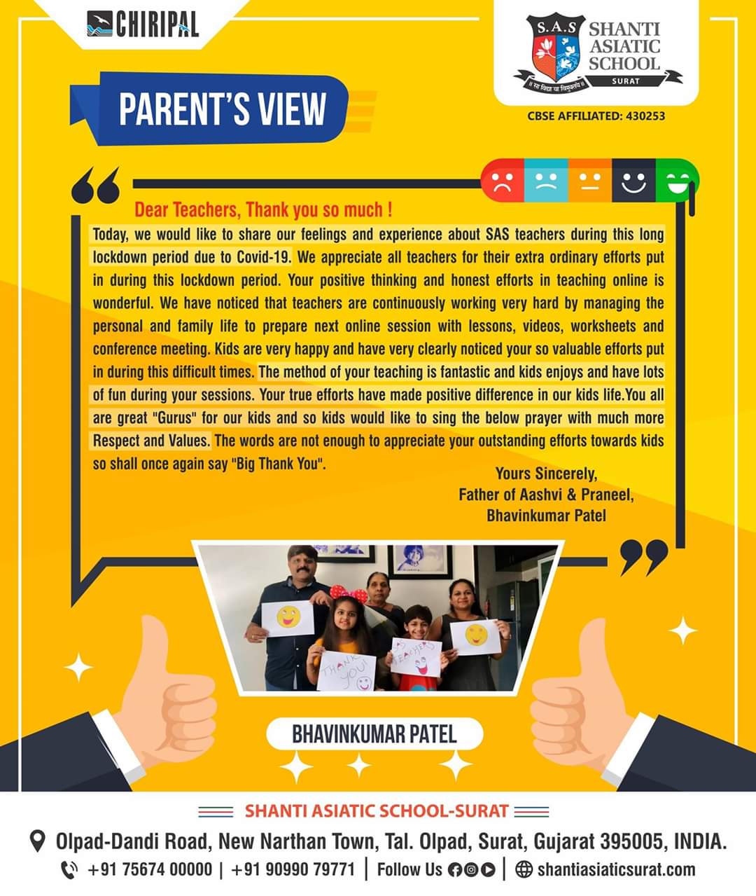 We, at Shanti Asiatic School Surat, believe education should be holistic and progressive that transforms a child to become a successful global citizen of tomorrow. Hence, our approach and outlook is a blend of values with a futuristic vision.