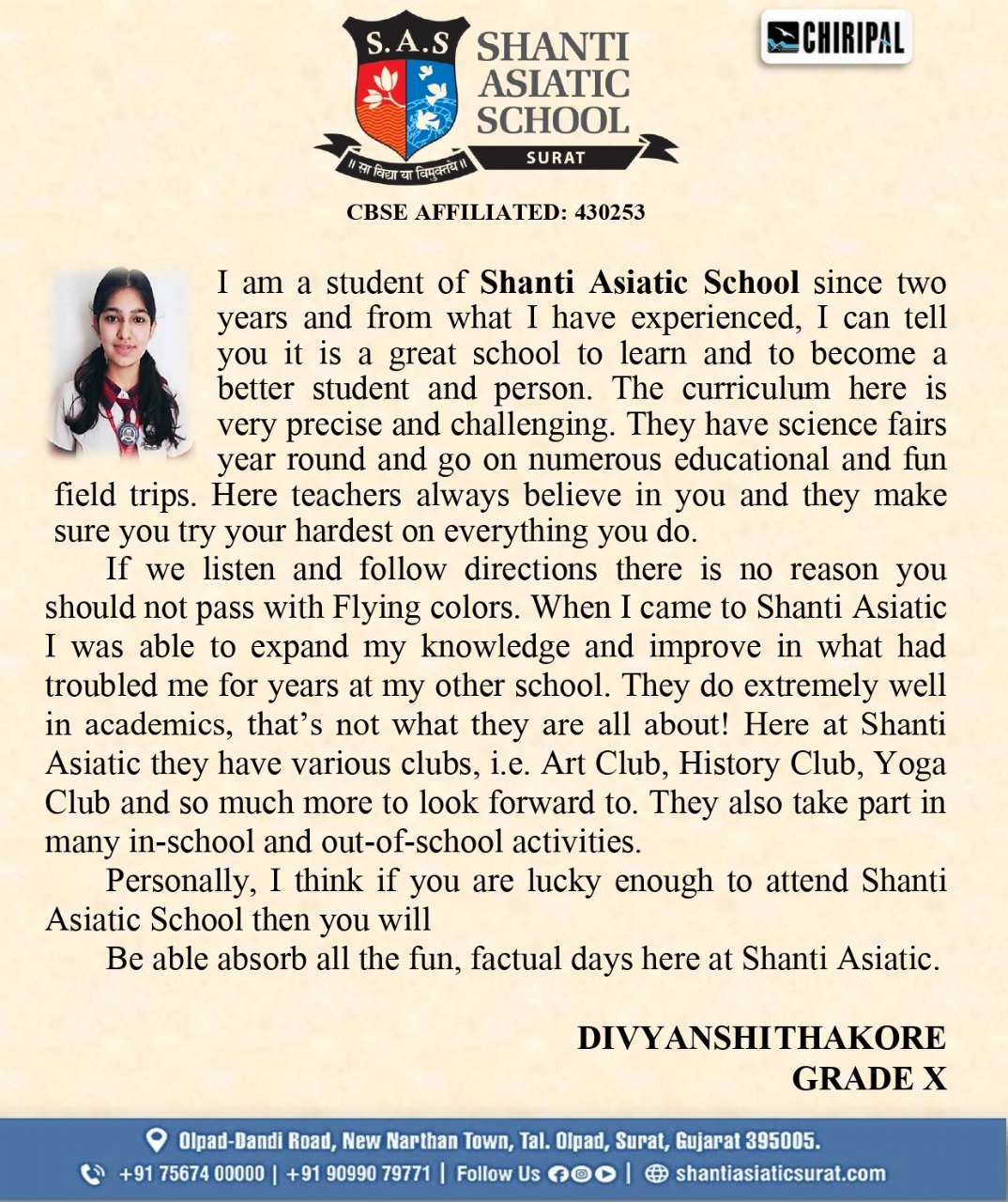 The school also houses the finest teachers for respective subjects thereby no compromise is made when it comes to academics. What makes Shanti Asiatic School, Surat stand ahead in the queue?