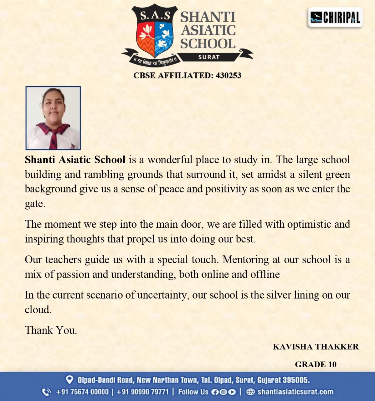 Someone from Shanti Asiatic School will get in touch with you.